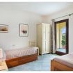 Scendendo al piano inferiore, troverete una camera matrimoniale e una camera con due letti singoli, che può diventare una stanza con 3 posti letto grazie a un letto a scomparsa. Entrambe le camere sono arredate con gusto, dotate di guardaroba e con accesso diretto al giardino privato. Il bagno in stile marino, con vasca, lavello e servizi igienici, completa questo piano.
